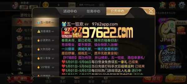 97622.com国际一款集全球玩家于一体的线上游戏平台,提供斗地主、麻将、炸金花、捕鱼等多款经典游戏。平台支持多语言界面,玩家可以与世界各地的对手竞技,享受真实、公平的对战体验。游戏画面精致,操作简便,内设多种赛事和活动,定期推出奖励丰富的挑战。通过智能匹配系统,平台为每位玩家提供合适的对手,确保竞技公平。