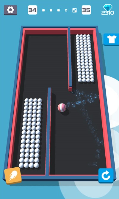 1、多元化球体库包含30种可解锁形态,从经典钢球到粘性胶球,每种球体拥有独特物理特性。火焰球可引燃木质障碍,弹簧球能实现多次弹跳,显著改变通关策略。