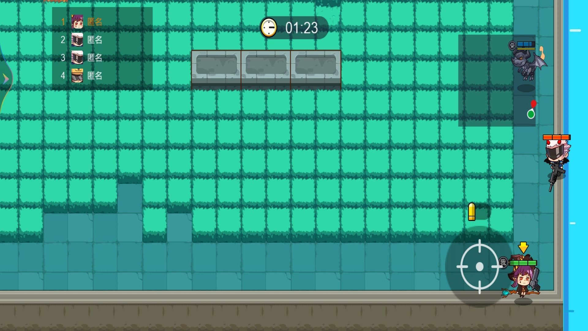 3、探索各个地图,寻找敌人的位置,实时射击。