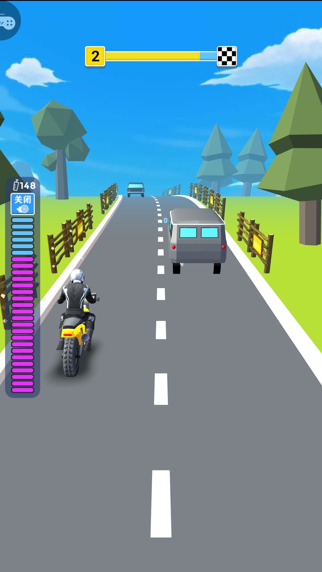 1、左右滑动控制摩托车变道,精准躲避迎面而来的车辆,不断的前进吧;